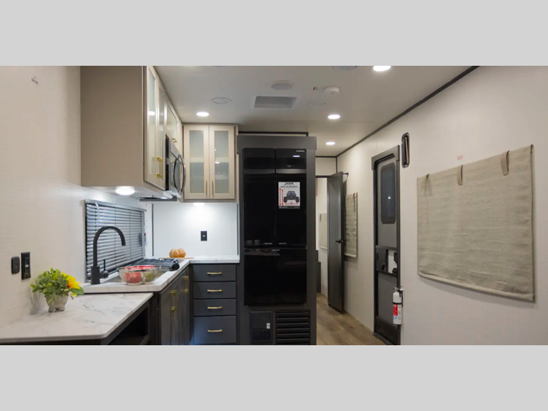 There is a rear beaver tail frame, a docking station, and a magnetic screen wall so you can let the fresh air in without letting the bugs in. You will feel right at home with decorative kitchen backsplash and LED lights, and there is a tankless water heater to provide endless hot showers after trail riding. The Alumifoil insulated enclosed underbelly will help extend your camping season, and the patio railing kit will let you enjoy more time outdoors once the toys are unloaded.